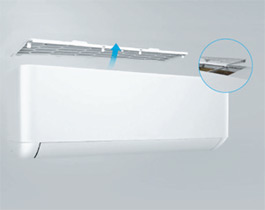 Filtrul de aer integrat, cu densitate ridicată, este ușor de accesat, prin partea superioară a unității interioare a aparatului de aer condiționat ALIZEE Pro AW24IT2, simplu de demontat și poate fi curățat cu apă.