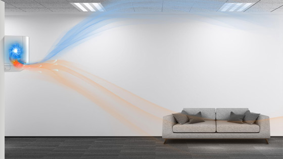 Datorita flapsului de mari dimensiuni, care crează un efect Coandă, aparatul de aer condiționat ALIZEE Pro AW24IT2, generează un flux de aer distribuit uniform şi larg, de sus în jos, ca un duş de aer rece, în modul de răcire, şi de jos în sus, ca o pătură de aer cald, în modul de încălzire.