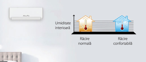 În modul răcire, aparatul de aer condiţionat ALIZEE Pro AW24IT2, monitorizează şi nivelul umidităţii, pentru a evita o dezumidificare excesivă a aerului.