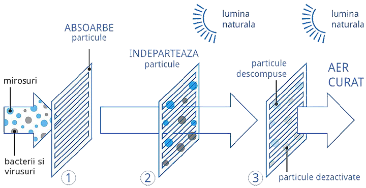 » Filtru fotocatalitic din apatit de titan pentru dezodorizare – Acest filtru este un excelent apărător împotriva substanțelor chimice dăunătoare, particulelor de praf, bacteriilor, virusurilor și alergenilor, eliminând în același timp mirosurile neplăcute provocate de tutun, animalele de companie etc.