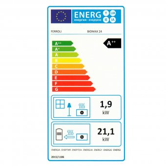 Cazanul mod.BIOMAX 24 cu o putere nominală de 23 kW garantează un volum maxim de 604 m3 încălzit luând în considerare coeficientul de construire a sumelor cererii de energie la 35W / m3. Acesta poate varia în funcție de izolare, tipul și zona climatică.