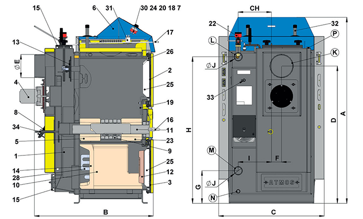 Cazan pe lemn si carbune cu gazeificare ATMOS C40S
