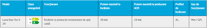 menajeră. Pentru că este un produs premium de top din gama centralelor pe gaz în condensare, centrala termică Baxi Luna Duo-Tec E 24 este capabilă să funcţioneze folosind orice tip de gaz adaptându-se foarte ușor la toate tipurile de gaz.