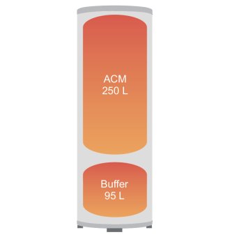 Boiler stativ cu 1 serpentină mărită, Dotels, rezervor ACM 250 L, buffer acumulare 95 L. |