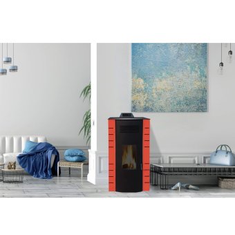 Semineu pe peleti cu perdea de aer cald AMIGA 10 kW