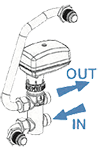 » Supapă cu 3 căi, 230V ON-OFF, cu motor electric și kit de montaj cu supapă de blocare micrometrică.