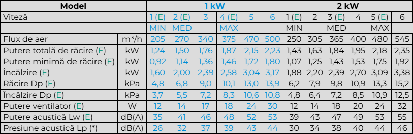 (E) = Performanță certificată Eurovent.