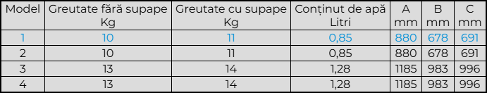Dimensiuni, greutate, conținut apă